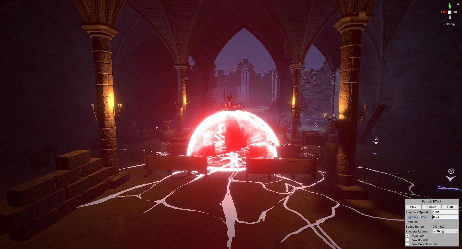 - I added in hooks for VFX throughout the project in all areas except for the boss fight. This made it considerably faster for our VFX artist to implement his own VFX and iterate quickly since he didn’t need to code anything. It was created so that he could simply attach Unity prefabs to those hooks. I also added placeholder effects to those hooks as well, so that it was obvious which parts still needed work.